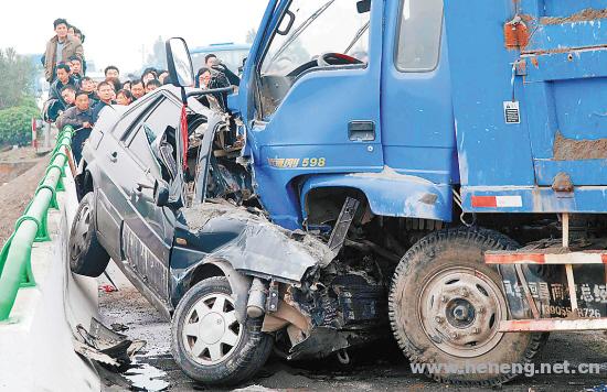 昨天上午9点左右,在嘉盐线与新07省道交叉口往南大约2公里处,一辆浙江海盐牌照的轿车和一辆安徽牌照的运沙车相撞,轿车上三男两女不幸遇难。据悉,五人均为秦山核电站职工,要赶去嘉兴考资格证。 赵颖硕 陆强 摄