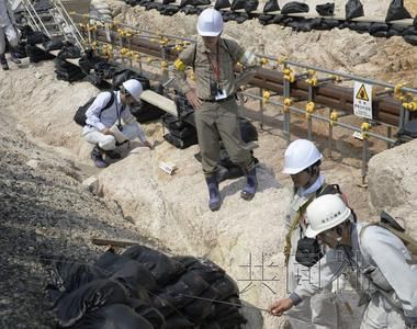本原子能规制委员会的调查团7月17日开始调查快中子增殖反应堆“文殊”号(位于福井县)正下方断层的活动性。图为调查团正在对断层所在的岩盘进行调查。(图片来自共同社)