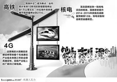 而消息面上,核电投资将“松口”,高铁投资再掀高潮、以及4G投资的启动……在业内人士看来,这一系列投资的背后都蕴含着重大机会,而受益于基本面转暖的核电、高铁、4G概念股也将迎来一波上涨行情。