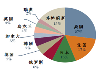 .美国有100个核电反应堆,在全球核电装机容量中占据最大份额(27%)。