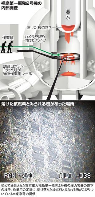 经过5年多的努力,慢慢清楚了周边被炸乱的建筑物和垃圾,终于在今年1月,可以送一台小机器人并送入一条缆式摄像镜进入到第二核反应堆的原子炉的炉底去拍照和检测,结果发现,燃料棒和预料的一样,都已经从炉底融穿后变成了金属疙瘩,而且推测出的最高辐射量达到了惊人的每小时530Sv(希沃特),比之前预测的数值高出了7倍。这一个辐射量有多厉害?据悉人靠近后几十秒就会死亡,就连这一台机器人也没能撑过2个小时而被迫撤离。