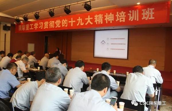 为深入学习贯彻党的十九大精神和习近平新时代中国特色社会主义思想。5月17日,陕柴重工党委按照中船重工党组统一部署,在陕柴宾馆举办党的十九大精神集中培训,为党员干部“补钙壮骨”。党委书记、董事长奚国伟,党委副书记、总经理孙志宏,副总经雷军,纪委书记侯鸿飞,副总经理杨小清、赵同宾及全体中层领导干部、中层助理80余人参加了培训。