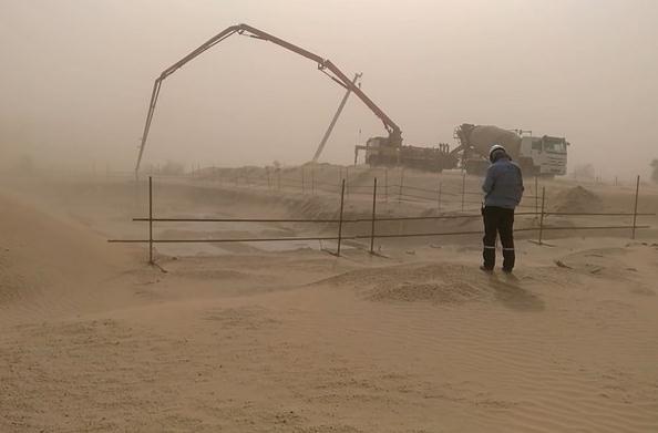 每天在温度超过50度、沙尘暴肆虐的沙漠中徒步12公里对他来说只是家常便饭。50天的工期,6公里的战线,3家不同的分包,200多名中巴工人……集技术员、施工员、翻译于一身的他,完全靠着满腔的激情和顽强的毅力克服工期紧、工作量大、管理难度大、物资匮乏等困难,奋勇向前,将项目的第一个关键节点——安全围墙封闭“走”了下来。