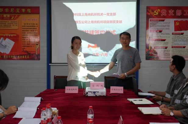 为了确保项目各项目标的实现,按照“四个同步”的要求,2017年10月26日成立了中核五公司上海光机所项目部党支部。项目以党支部为战斗堡垒,充分发挥党员模范带头作用,与中科院上海光机所机关一党支部结对共建,并组织参建各方成立党员联合突击队,带领参建各方服务于工程施工的中心工作,共同攻克工程中的种种难关,充分发挥党组织在工程施工中的核心作用。(图片3、图片4)