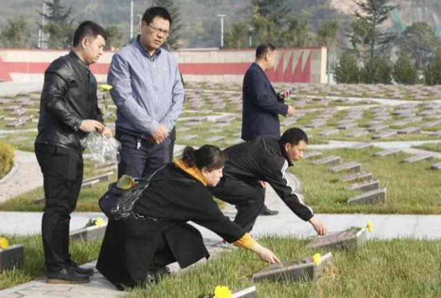 在烈士陵园,党员们怀着崇敬的心情,向在扶眉战役中牺牲的烈士们鞠躬默哀,并献上鲜花,表达对革命先烈的哀思。