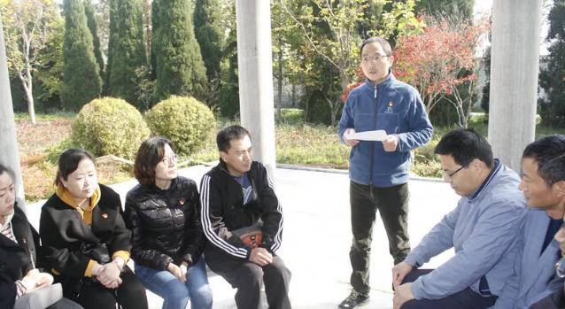 在纪念馆一侧,党员们围绕本次学习教育,开展了“缅怀英烈铭心志,牢记使命建新功”的微党课。党支部书记刘东波希望大家铭记革命先烈,传承红色基因,坚定共产党员信仰,践行共产党员标准,立足本职岗位,发挥党建工作优势,积极投入到公司改革发展的新征程。同时,他号召广大党员先人一步,通过主题教育,自我洗礼、自我净化、自我完善,率先转变思维和工作作风,立足岗位,解放思想、革新除旧,担起使命、扛起责任,切实通过新思路、新举措促进公司党建工作取得新成效,助力陕柴新发展。