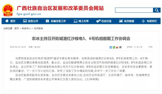 自治区能源局副局长黄奇海、自治区发展改革委电力处,自治区自然资源厅、生态环境厅、海洋局,防城港市发展改革委,广西防城港核电有限公司等单位负责人参加会议。
