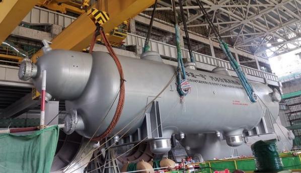 2020年4月27日16时59分,伴随着起重指挥嘹亮的“哨响”声,福清核电6号机组汽水分离再热器(MSR“A”)缓缓落在球轴承上,至此福清核电6号机组的2台汽水分离再热器(MSR)全部就位,此次MSR吊装就位标志着6号机组常规岛所有辅机大件设备吊装工作圆满完成。
