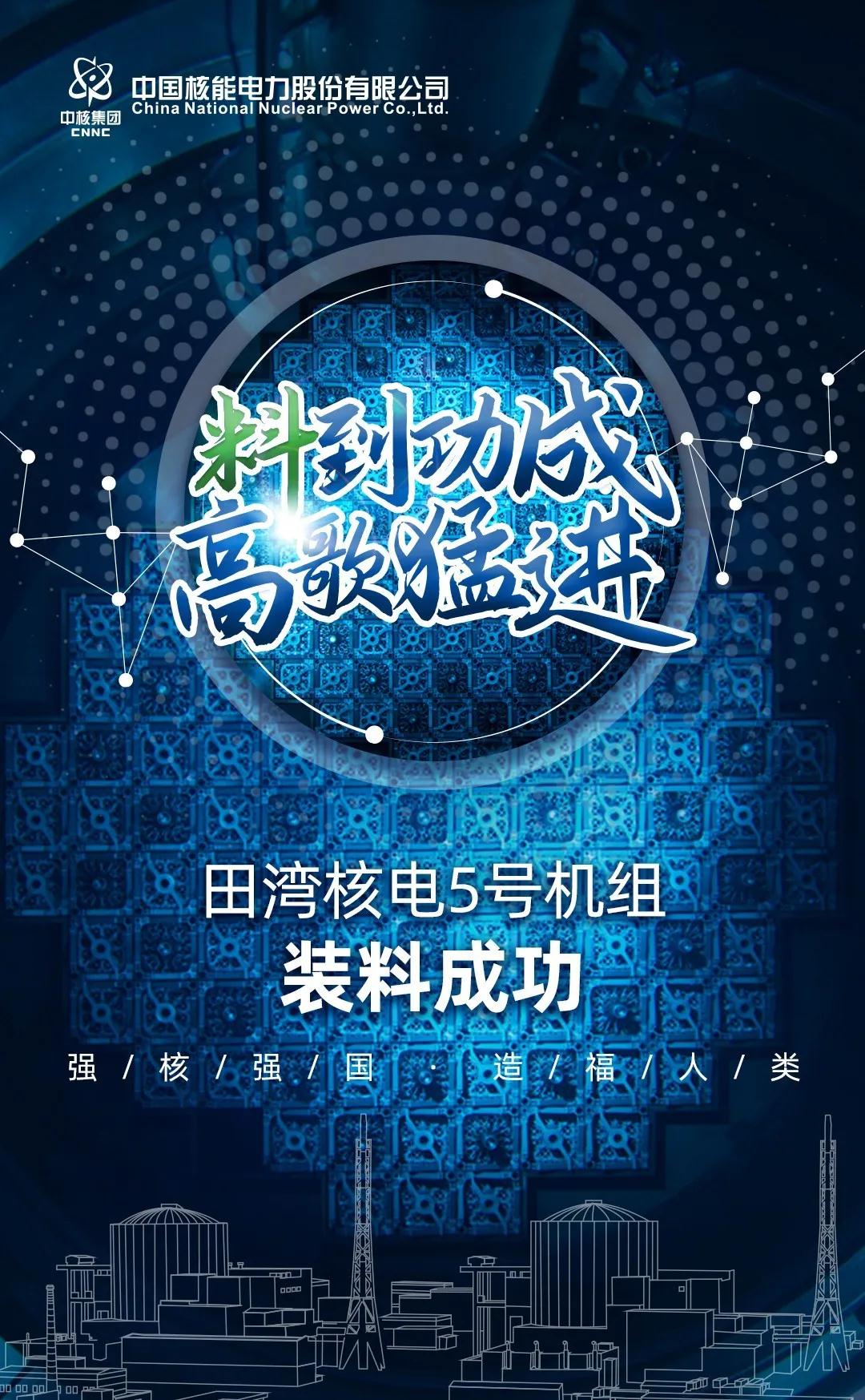 7月11日17时12分,田湾核电5号机组最后一组燃料组件缓缓装入堆芯,标志着田湾核电5号机组首次装料作业圆满完成,为5号机组后续按计划发电并网奠定了基础。