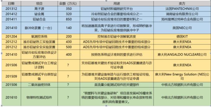 另外,液态铅铋热工实验装置和安全实验装置、铅基集成测试平台原型设备及铅铋集成测试平台工程设计资料和铅铋冷却反应堆总体设计方案评估均从意大利采购。