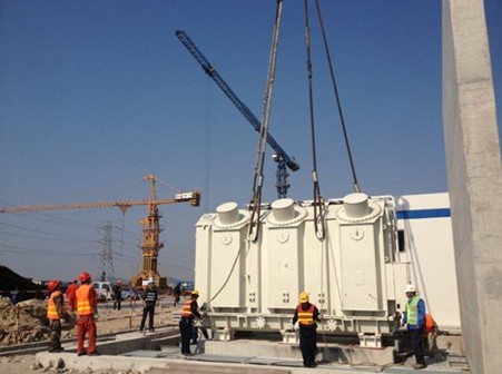 3月12日下午,经过各方的共同努力,福清核电3-4号机组2台220kV辅助变压器一次性成功吊装就位。辅助变压器就位精准,误差满足设计及电力规范要求,整个吊装过程安全可控。