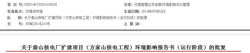 关于秦山核电厂扩建项目(方家山核电工程)环境影响报告书(运行阶段)的批复