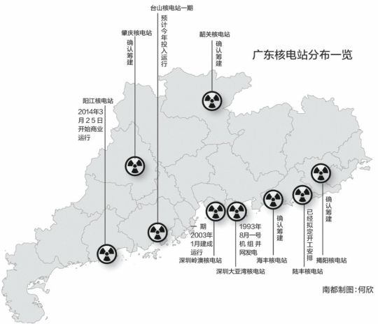 图为广东核电站分布一览。(图片来源:南方都市报)