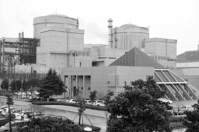 ▲秦山核电基地最新投产的方家山两台108万千瓦压水堆核电机组(1月29日摄)。