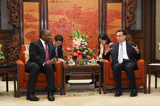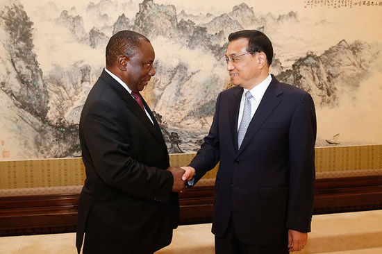 国务院总理李克强14日下午在中南海紫光阁会见南非副总统拉马福萨。