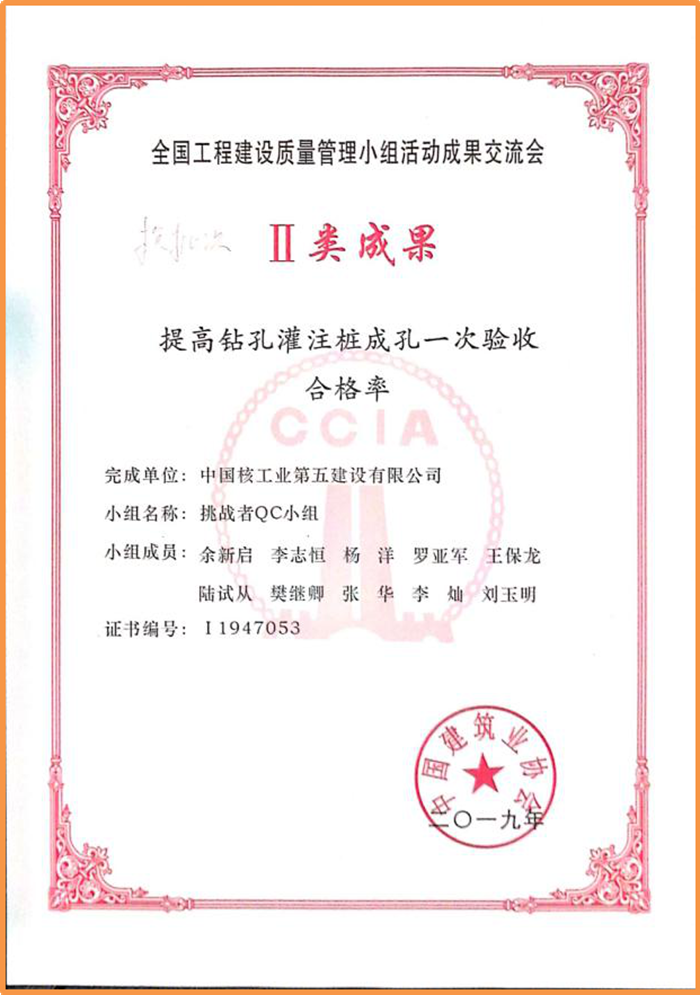 中核五公司张家界项目获全国工程建设质量管理小组活动成果二等奖两项张家界项目获全国工程建设质量管理小组活动成果二等奖两项