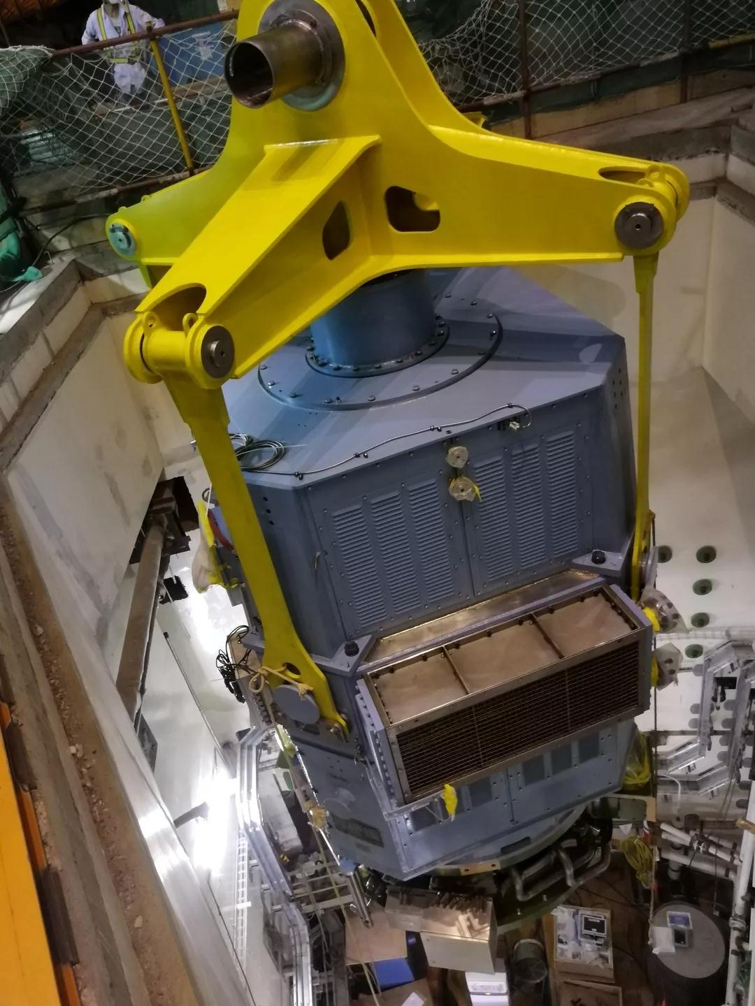巴基斯坦卡拉奇时间8月23日18时22分,海外“华龙一号”卡拉奇2号机组首台主泵电机吊装就位,为后续系统调试创造了条件,也为后续华龙一号机组建设发挥了良好的示范效应。同时,标志着K2机组全部主设备安装技术难点已经攻克,中核五公司掌握“华龙一号”机组所有主设备吊装引入工艺。