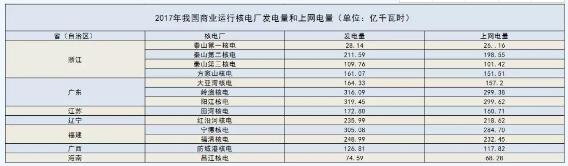 从发电量和上网电量上看,2017年,我国商业运行核电厂年累计发电量2474.69亿千瓦时,占全国总发电量的3.86%;年累计上网电量2316.42亿千瓦时,其中送往香港电网电量125.76亿千瓦时;商用核电机组整体设备平均利用率为7108.05小时,平均利用率为81.14%。