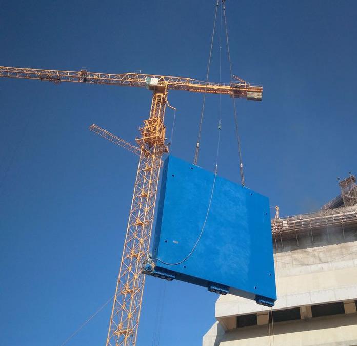 抗大飞机撞击防护门本体尺寸8000×8000×800毫米,重约70吨,安装于龙门架与防护厂房相接的墙体进出口处,用于抵抗大型商用飞机的撞击力,属于安全相关级设备。该防护门为单扇横向电动推拉门,在停堆换料和检修期间可开启,正常运行期间处于关闭状态。