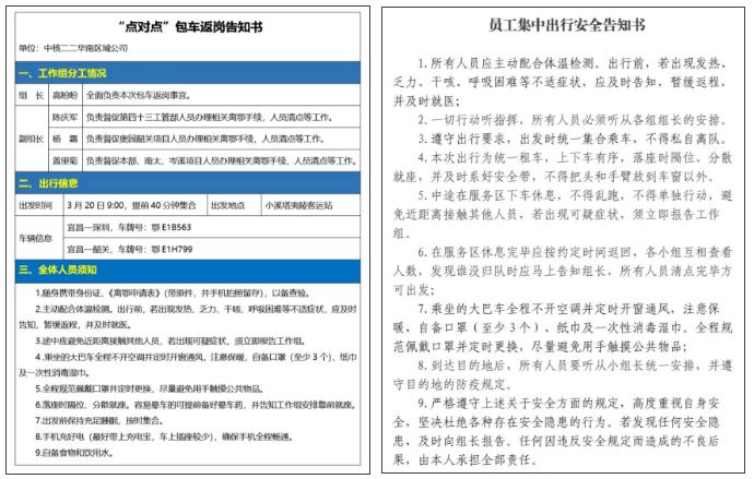 自2月22日以来,为了切实解决湖北籍员工出行难、暂时无法返岗的实际困难,中核二二公司启动湖北省外员工、劳务人员替代方案,通过跨区域调剂,满足了阶段性用工需求。同时,公司各单位制定了详细的“点对点”包车方案,打通人员返岗的“最后一公里”。公司各单位积极与所在地社区和政府部门沟通联络,了解相关政策、协调专用车辆、对返程路线进行规划、制定返岗应急预案;实业公司积极协调,加快落实办理滞留宜昌人员流动手续和车辆离鄂通行证办理,顺利启动了“返岗直通车”计划。