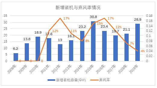 如果结合装机量和弃风率可以发现,风电装机在弃风率减少时便会出现增长。究其原因,主要就是消纳问题。