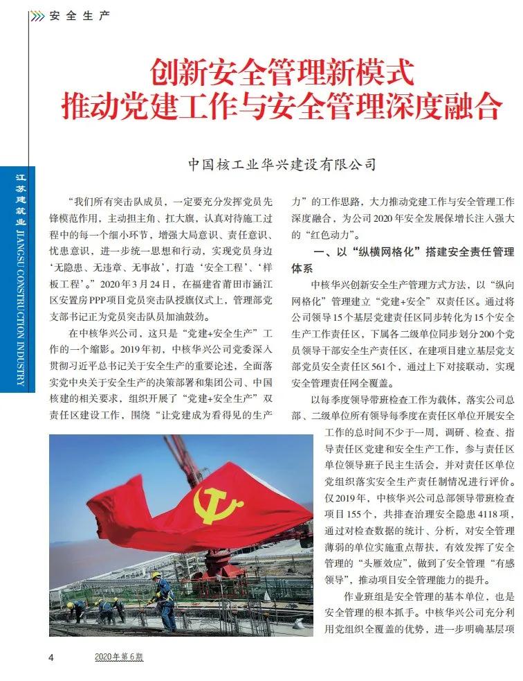 中核华兴公司将安全管理作为切入点,积极探索党建融入中心工作的有效方式,主动适应当前形势要求,从讲政治的高度、讲效益的角度、讲法制的深度认识安全工作的抓手,创新建立党员“安全+生产”双责任区,实现了工作方式和工作方法的转变,护航中核华兴公司2020年复工复产保增长取得显著成效。