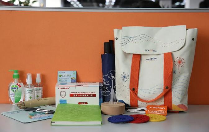 图 / 酒精、口罩、洗手液,彩铅、签字笔、鼠标垫还有笔记本、小夜灯、晴雨伞、帆布包等共计13类贴心用品