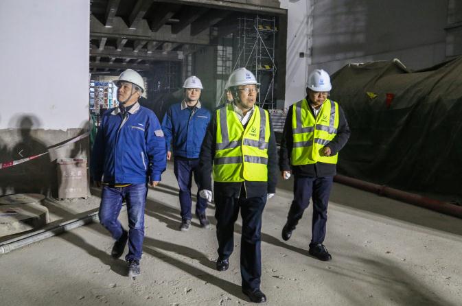 在工程建设现场,张仕兵实地查看了核岛、常规岛、BOP各子项施工进展,详细了解了施工组织协调、安全质量管理和施工技术准备情况,并与一线职工亲切交流,勉励大家克服困难,积极作为,高质量建设好示范快堆工程。
