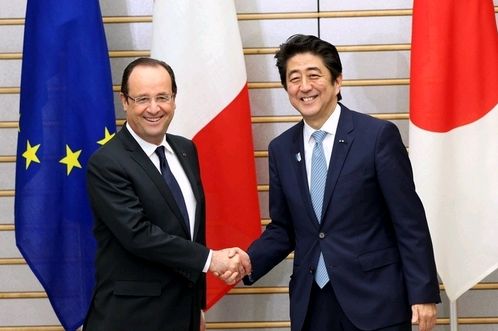 国际在线专稿:据日本时事通讯社6月7日报道,日本首相安倍晋三于7日在首相官邸同法国总统奥朗德进行会谈。两国就向第三国出口核电技术、扩大福岛第一核电站废炉处理方面的合作等达成一致。日本在核电技术输出领域与中国、韩国、俄罗斯等国竞争趋向激烈化,因此决定与核电技术大国法国联手抗衡这些国家。