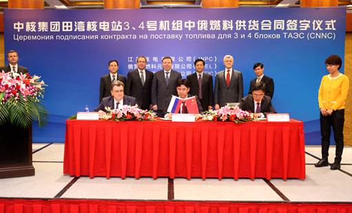 2013年10月19日,TVEL股份公司、江苏核电有限公司(JNPC)与中国原子能工业公司(CNEIC)在北京签署能源供应与配件供应合同,将为田湾核电站(TNPP)3号和4号机组起步区以及田湾核电站3号机组的六个换料组件提供核燃料,同时为田湾核电站宜宾核燃料厂的全部四个机组提供燃料生产所需要的零配件。