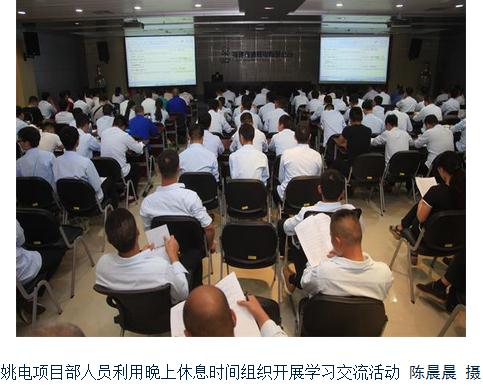姚电项目部人员利用晚上休息时间组织开展学习交流活动 陈晨晨 摄