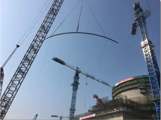 2017年4月14日,随着“华龙一号”首堆示范工程福清核电5号机组环吊轨道最后一段缓缓就位在环吊轨道梁上,至此该机组环吊轨道全部吊装就位,为后续实现穹顶吊装施工创造了有力条件。