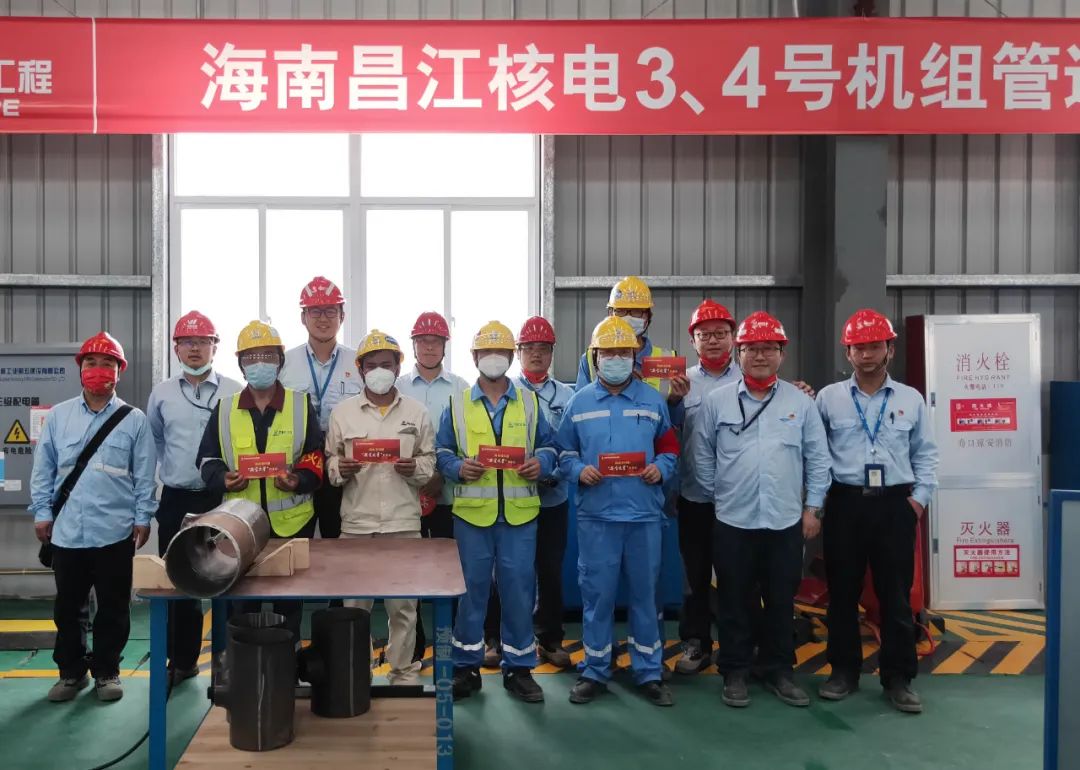 2022年3月31日下午14:38,在海南昌江核电二期工程项目中核五公司碳钢管道及支架预制车间,华能昌江核电公司协同海南核电、中核工程公司、中核咨询对华能海南昌江核电二期工程项目首批管道—核岛消防水生产系统管道预制先决条件进行检查,检查结果合格,3号核岛第一份管道预制质量计划开启,标志着二期工程项目管道预制正式开工,较计划提前两天完成。