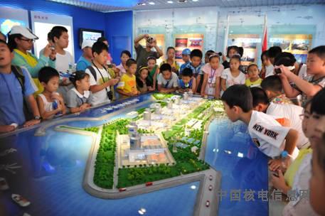 为进一步加强普及核电科普知识和核安全、应急知识,不断提高周边地区公众对核电的了解,为核电发展营造良好氛围,中电投集团山东核电于近期开展核电站开放日活动,向周边地区及员工家属的中小学生宣传普及核电科普知识。 7月28日,烟台日报传媒集团水母网组织了50名小记者及其家长到中电投集团所属的山东海阳核电参观,与海阳核电进行了一次“亲密接触”。此次活动主要是为了使小记者们在暑假期间学习核电科普知识,对家乡的核电事业有所了解,并通过小记者的所见、所感,推动更多的人支持海阳核电的建设。在一个半小时的参观过程中,工程部员工引领着小记者在车上参观了海阳核电现场,生动地讲述了海阳核电的发展故事;运行部员工带领着小记者参观了公司的沙盘和展览室,向他们介绍了核能发电的原理、核电的安全、核电站的清洁、环保等。这些年龄在8岁到12岁不等的小记者们都是烟台市各小学的在校学生。他们对核电都表现出浓厚兴趣,认真聆听讲解员的讲解,聚精会神地观看《核电新能源》科普宣传片,与公司员工就“核安全、核废物处理、核电发展意义”等问题进行了交流。