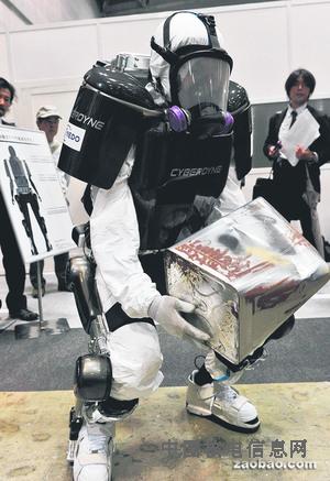 来自千叶工业大学的发明家小柳荣次说,这款机械服可用来进行福岛核电站的清理工作。他说:“我们得想办法保护核清理人员,否则福岛的问题永远无法解决。”