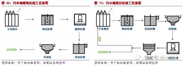 根据中广核达胜公司官网介绍,电离辐射是一项治理环境污染的高新技术,可以对燃煤烟气、污泥以及固体废物、工业废水如造纸、印染、化工、制药、农药等多种行业废水、生活污水、微污染饮用水等进行处理,特别对于那些采用常规方法(如生化法、化学法等)难以处理的污染物,辐射技术是一种非常重要的解决手段,而且不会产生二次污染。工业加速器处理污水的原理是:利用工业加速器产生的电子束流对污水进行辐照,利用电离辐射使水中的污染物发生分解或降解、有害微生物发生变性等,从而达到消毒净化的目的。